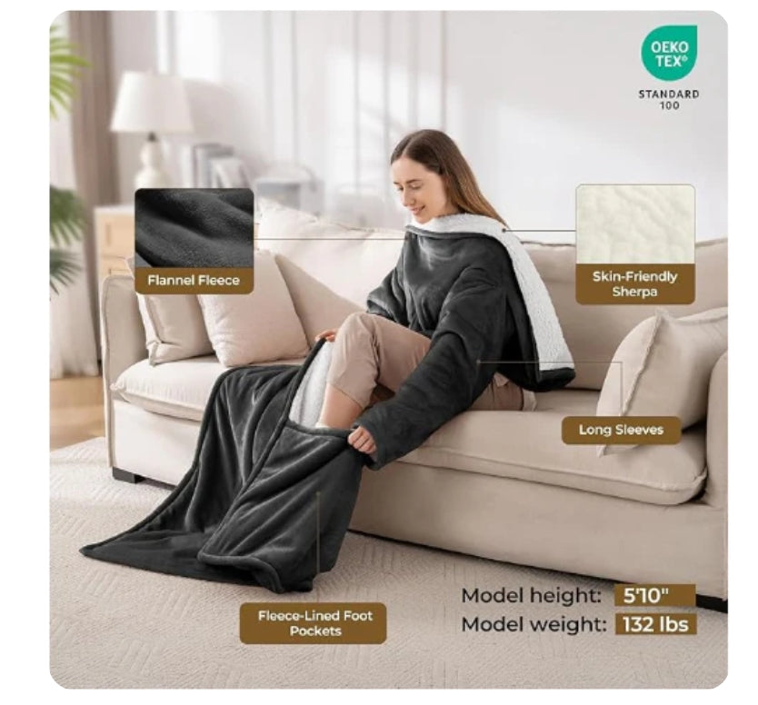 Instead of choosing between staying warm or using your phone, reading, gaming, or working on your laptop, SnugBabes™ keeps your entire body heated while leaving your arms free. The oversized, ultra-soft heated robe wraps your shoulders, chest, legs, and feet in consistent warmth, giving you a cocooned, hugged feeling—far beyond what a thin throw blanket can offer. It’s like slipping into a heated cloud of pure comfort.